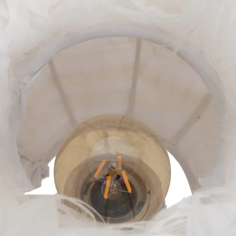 Este elegante candeeiro de mesa combina um toque de leveza com um estilo sofisticado, sendo perfeito para criar uma atmosfera requintada e charmosa em qualquer divisão. Com uma base em branco e dourado e um design adornado com plumas, esta peça transforma o espaço com uma iluminação suave e acolhedora, enquanto adiciona um toque de luxo. Ideal para mesas de cabeceira, consolas ou mesas de apoio, é o detalhe perfeito para elevar a sua decoração.