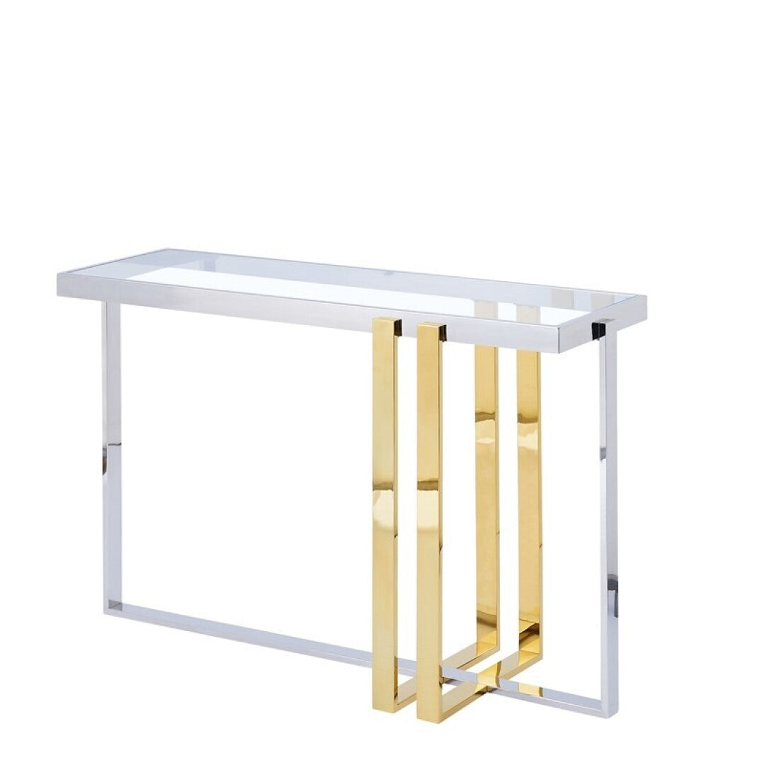 Elegante e sofisticada, esta consola combina a robustez do aço inoxidável dourado com a leveza do vidro temperado, criando um design moderno e intemporal. Perfeita para complementar a decoração da sua entrada, sala ou qualquer espaço que peça um toque de requinte.