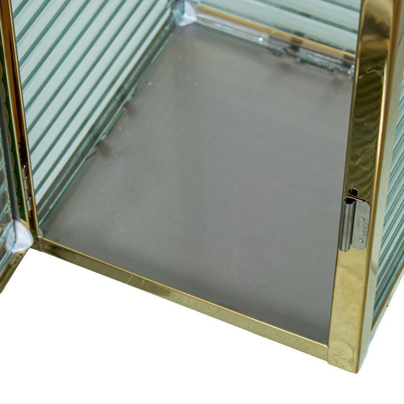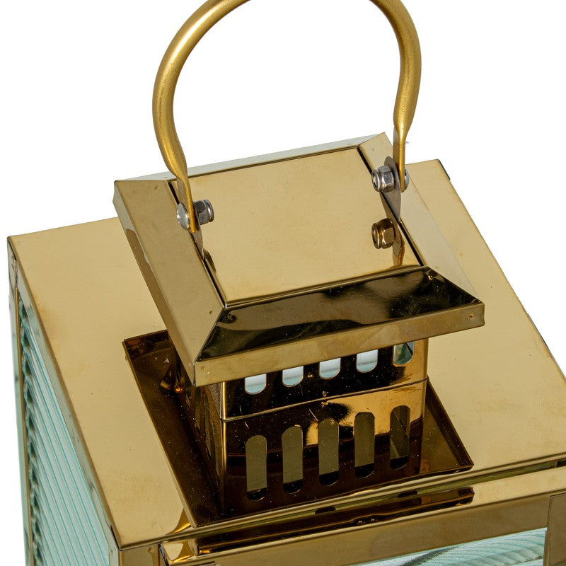 Lanterna em Metal Cromado Dourado com Vidro