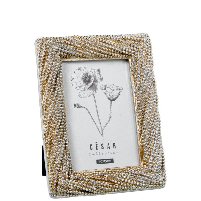 Exiba as suas melhores recordações com esta moldura requintada em resina prateada, enriquecida com detalhes texturizados que realçam o seu brilho. Perfeita para adicionar um toque sofisticado a qualquer ambiente, seja numa mesa, prateleira ou consola. Um complemento elegante para destacar as suas fotografias mais preciosas.
