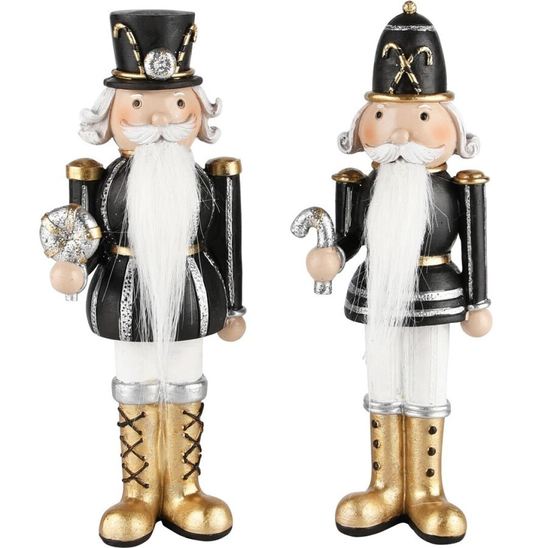 Esta elegante dupla de quebra-nozes de pé, em tons clássicos de preto e branco, segurando uma icónica bengala doce, é uma peça essencial para uma decoração natalina repleta de charme e tradição. Feito em poliresina de alta qualidade, este quebra-nozes combina detalhes refinados e um toque de sofisticação, ideal para dar destaque a qualquer ambiente. Perfeito para mesas, prateleiras ou junto à árvore de Natal, esta figura adiciona uma aura nostálgica e festiva à decoração, tornando-se um verdadeiro símbolo do espírito natalino.